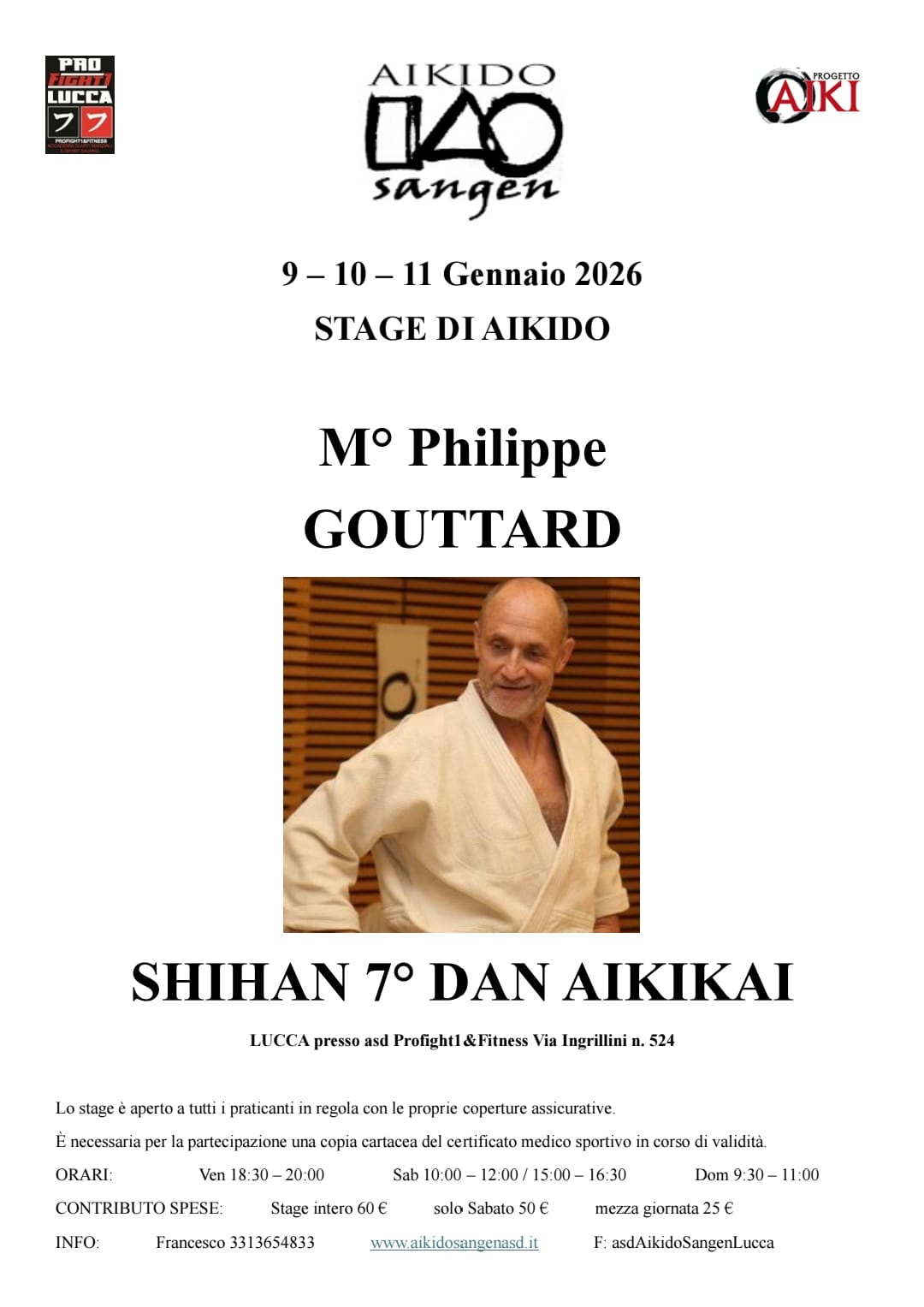 Venerdì 9, Sabato 10, Domenica 11, il Dojo AikidoSangen Lucca ospiterà lo stage del Maestro Philippe Gouttard Shihan 7° Dan Aikikai.