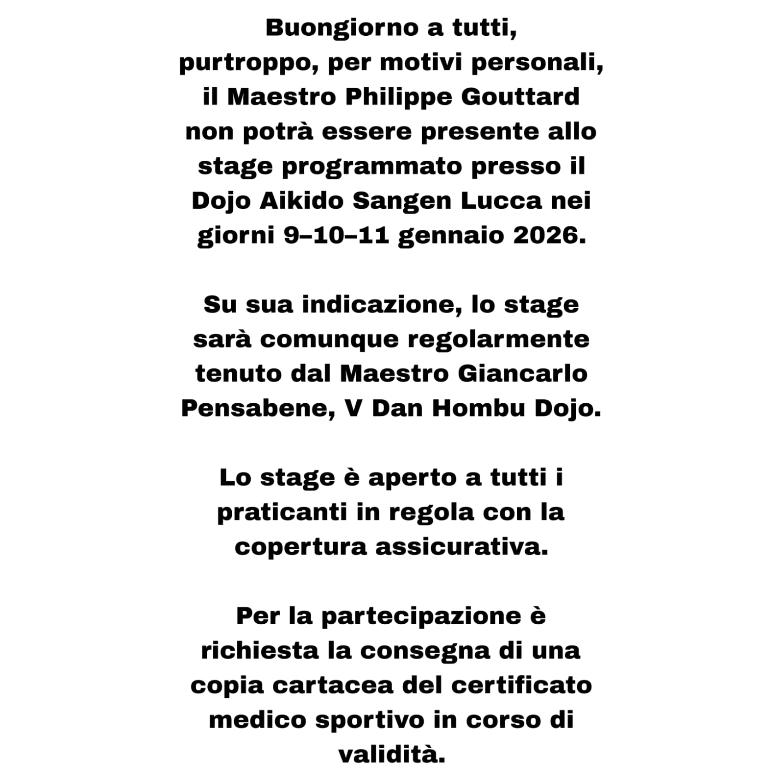 Lo stage è aperto a tutti i praticanti in regola con le proprie coperture assicurative.